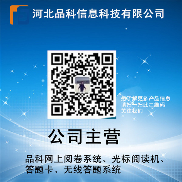 品科為全國用戶提供信息卡 機(jī)讀卡 高考網(wǎng)上閱卷系統(tǒng)、多功能光標(biāo)閱讀機(jī)、外包型閱卷服務(wù)以及包括答題卡、智能軟件定制服務(wù)及答題卡讀卡機(jī),主要應(yīng)用于考試閱卷評分。教學(xué)評估,和各類問卷等。