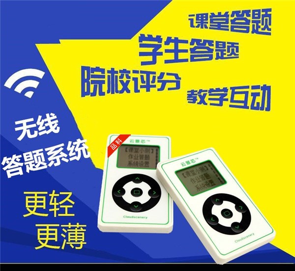無線答題系統簡稱答題寶是基于2.4G無線射頻技術特點設計而成的,是一個輔助教師進行課堂互動的工具,是一套集教學互動反饋、教學評測及游戲活動于一體的課堂互動反饋系統。學生人手一個與校卡融合的答案發送器,根據作答模式使用校卡按鈕參與回答老師的提問;老師通過界面功能按鈕與學生進行課堂互動,互動參與情況會生成報告在“云”端展現。
