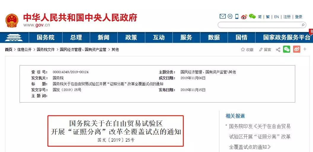 文件名稱:國(guó)務(wù)院關(guān)于在自由貿(mào)易試驗(yàn)區(qū)開展“證照分離”改全覆蓋試點(diǎn)的通知(國(guó)發(fā)〔2019〕25號(hào));